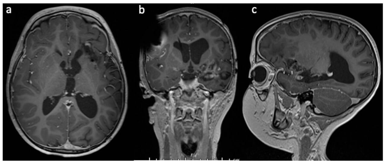 - Radiation necrosis. It is a common complication in neuro-oncology practice. The overall incidence of its development after various types of radiotherapy is approximately 5-10%; however, in patients who have previously received stereotactic radiosurgery (SRS), the risk may increase to 50%, especially when doses in the range of 16-22 Gy are used [2].