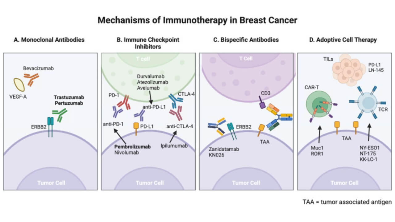 [4] Natalie K. Heater, Surbhi Warrior & Janice Lu. Journal of Hematology & Oncology volume 17, Article number: 131 (2024). Current and future immunotherapy for breast cancer. https://jhoonline.biomedcentral.com/articles/10.1186/s13045-024-01649-z